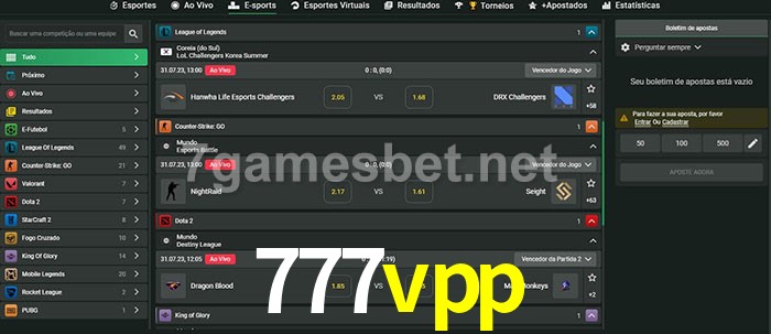 A aposta 777vpp oferece aos jogadores a experiência mais conveniente de apostas em eSports!
